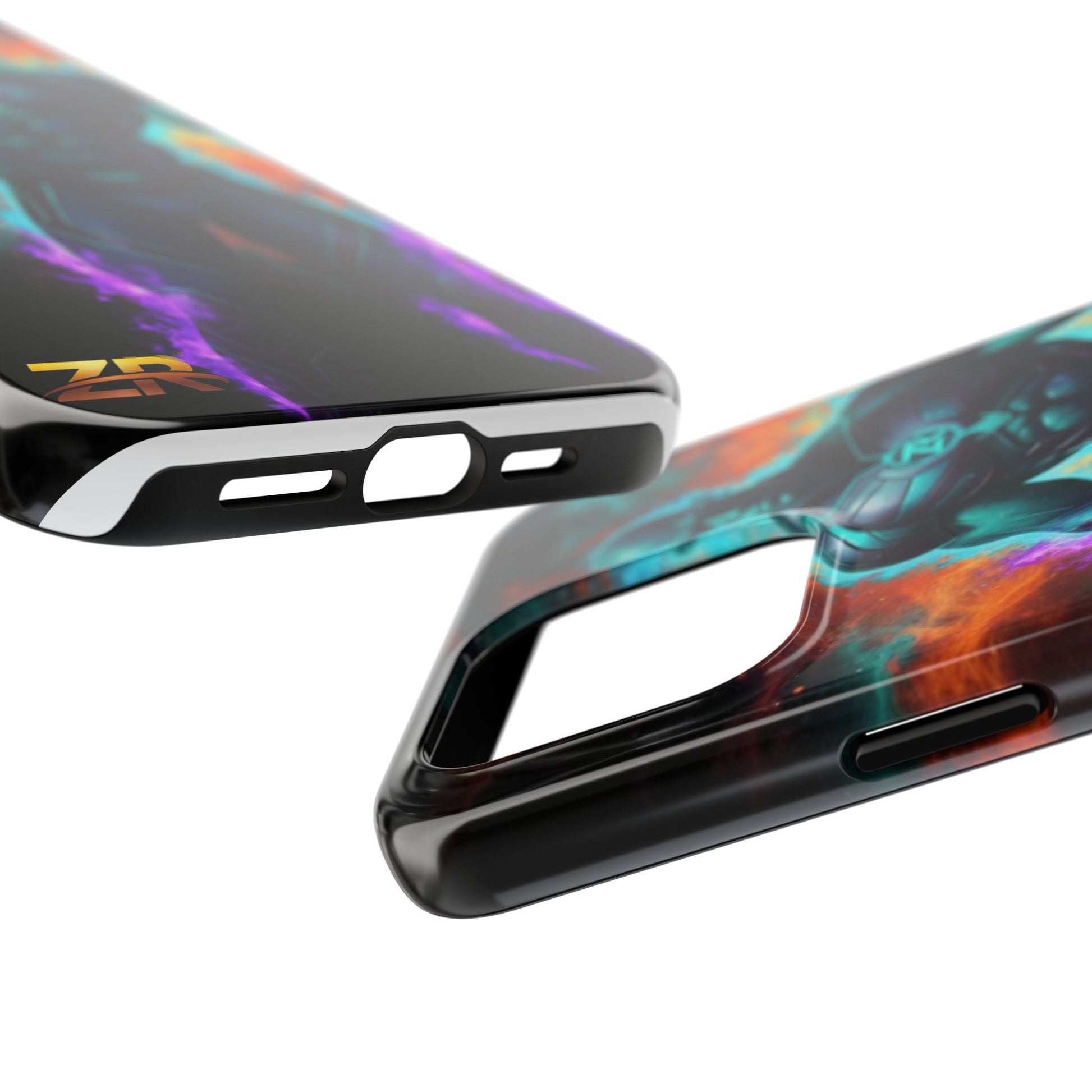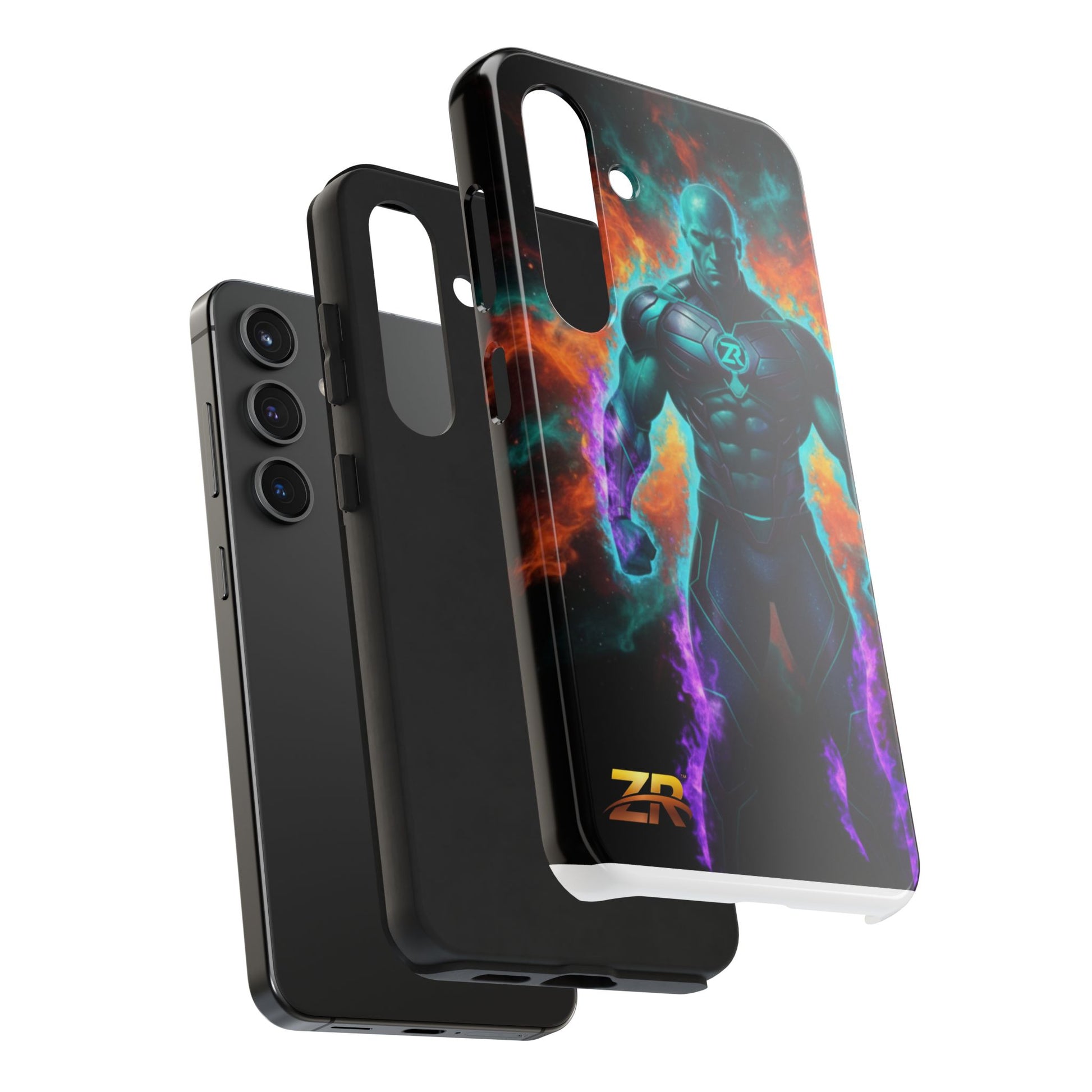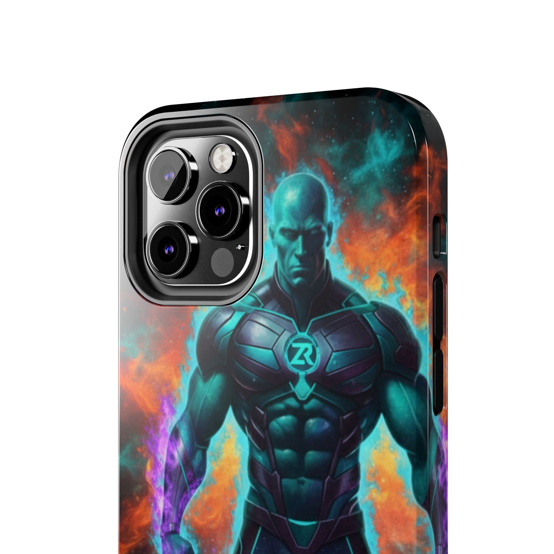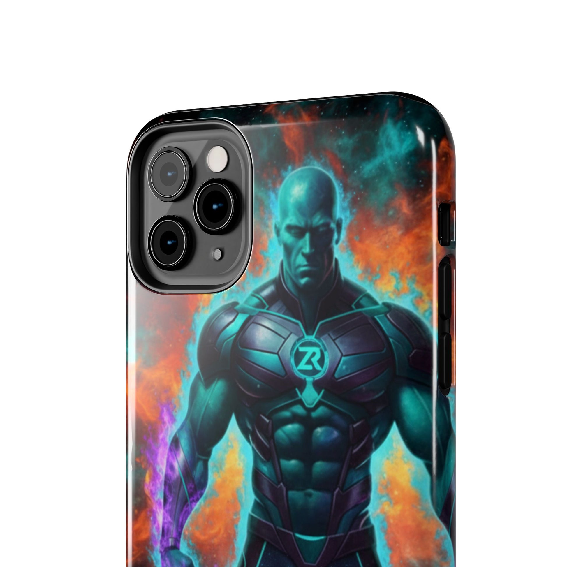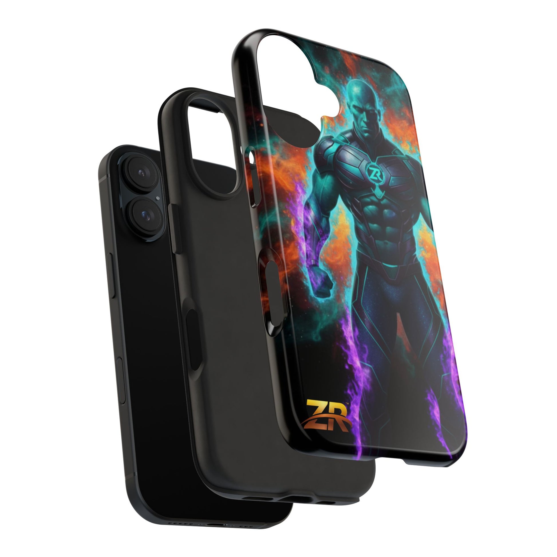 Protect your phone with cosmic power. The COSMIC SUPERHERO Phone Case from BLOODLINE™ GUARDIANS Collection features a powerful teal-skinned warrior with muscular build, ZR™ logo chest armor, and purple energy flames. Epic cosmic background with orange and teal nebula clouds. Premium dual-layer protection with glossy finish and shock-absorbent design. Available for iPhone and Samsung Galaxy models. Limited edition premium phone protection by Zest Rhythm™. It's Not Just Gear — It's A BLOODLINE™. It's Only The Start 🚀