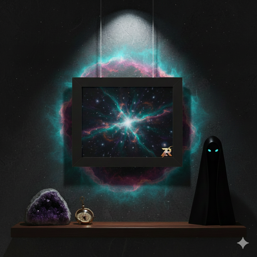 Premium cosmic wall art. Limited edition BLOODLINE™ design. Museum-quality full-bleed print. Perfect for home office, creative studio, or meditation space. Join our evolution.