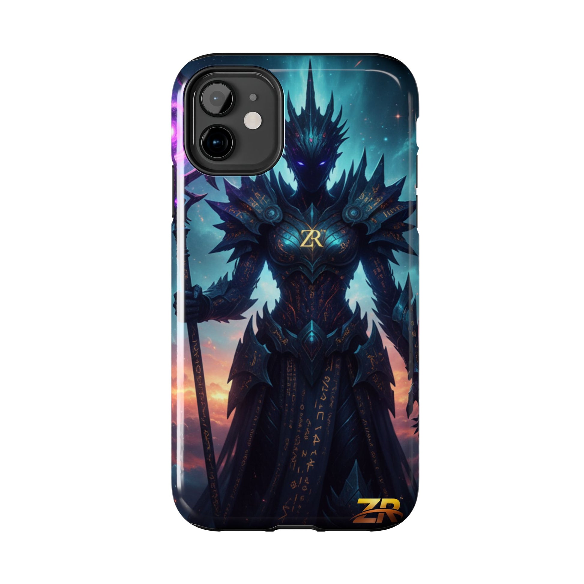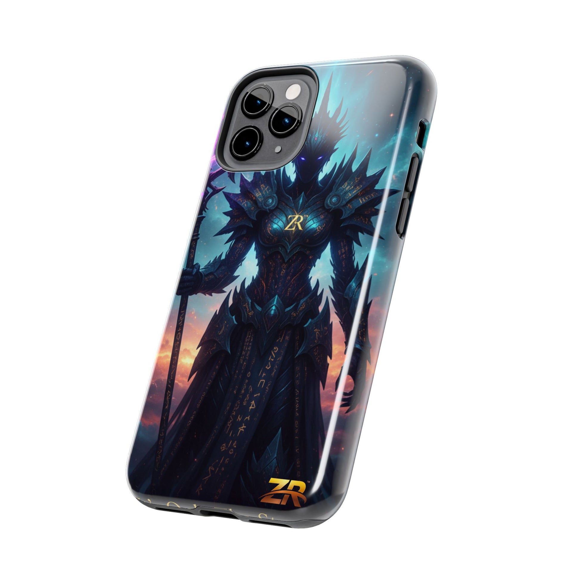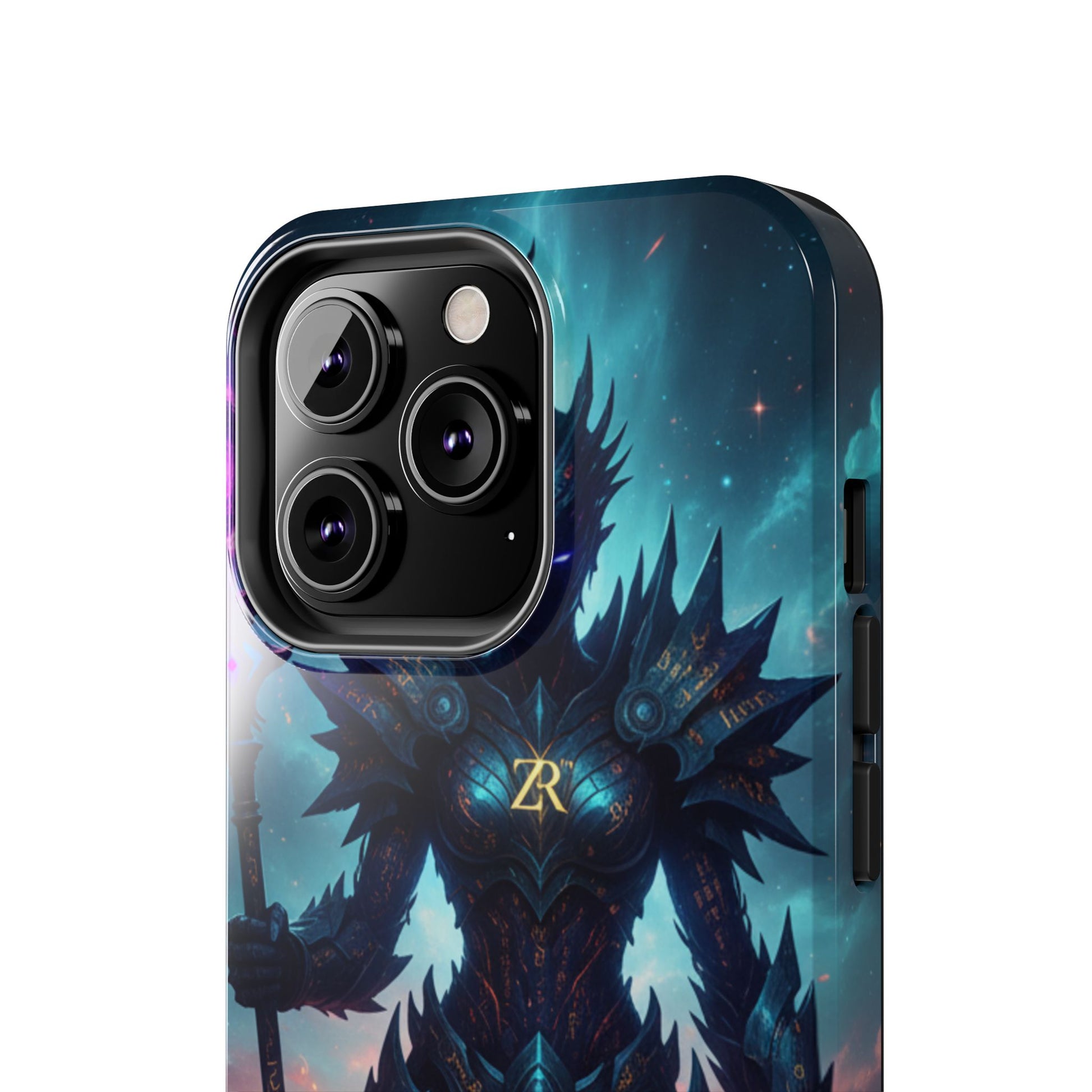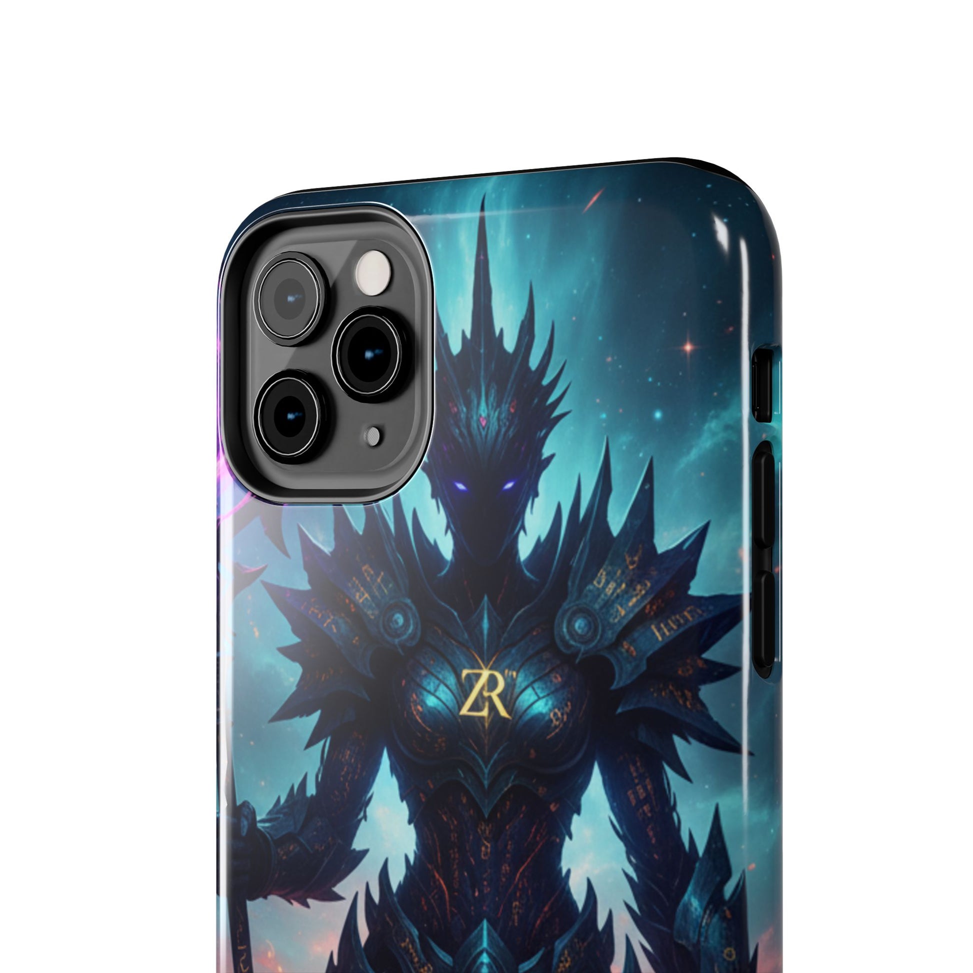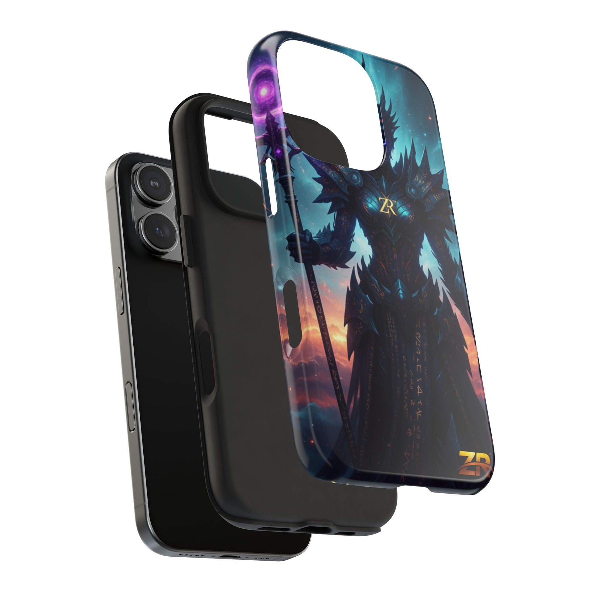 Protect your phone with cosmic power. The COSMIC SENTINEL Phone Case from BLOODLINE™ GUARDIANS Collection features a mysterious dark warrior silhouette with massive spiked armor, glowing teal energy, and ZR™ gold logo. Epic sunset cosmic background with purple and orange skies. Premium dual-layer protection with glossy finish and shock-absorbent design. Available for iPhone and Samsung Galaxy models. Limited edition premium phone protection by Zest Rhythm™. It's Not Just Gear — It's A BLOODLINE™. It's Only The Start 🚀