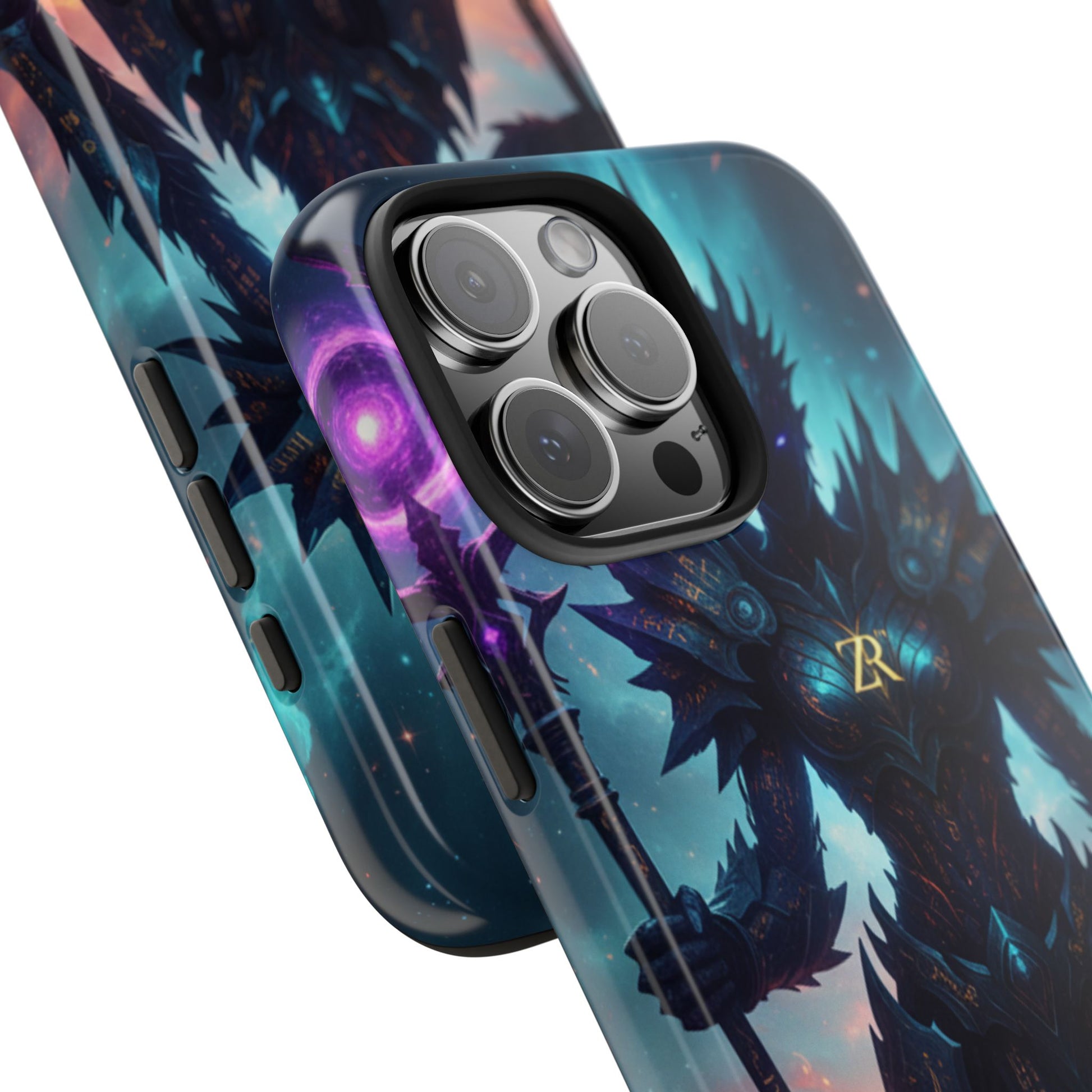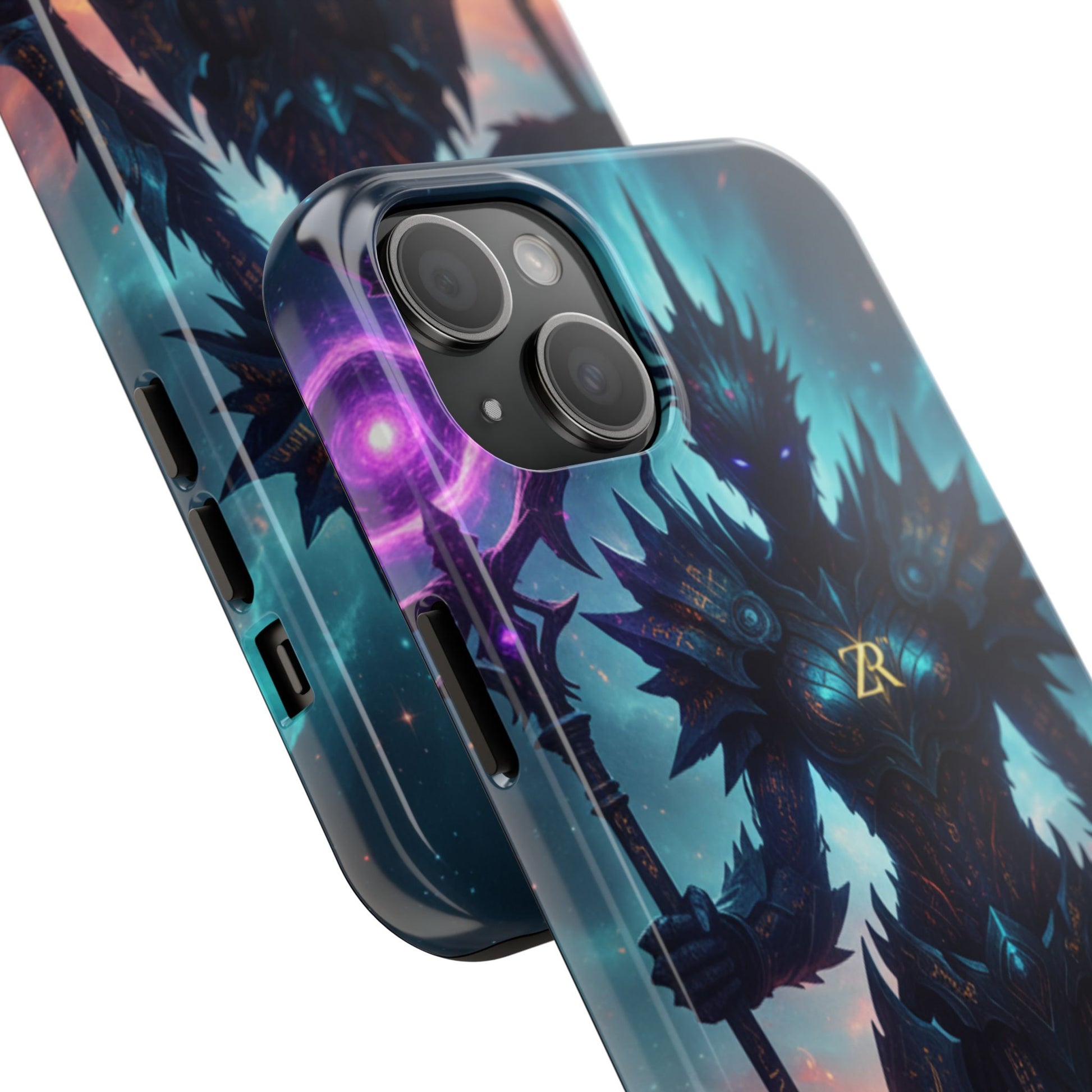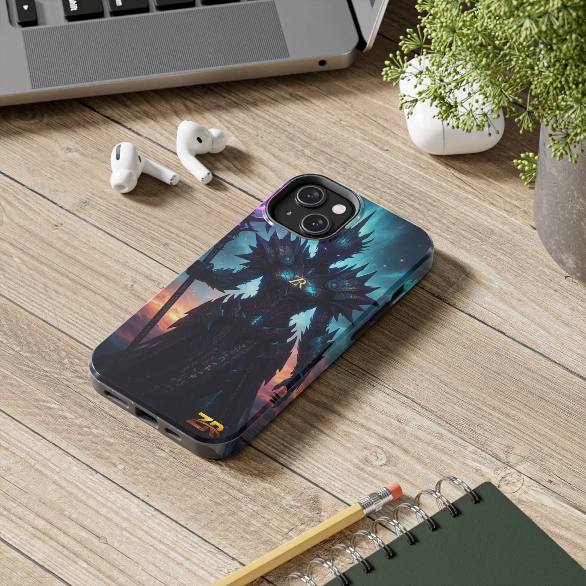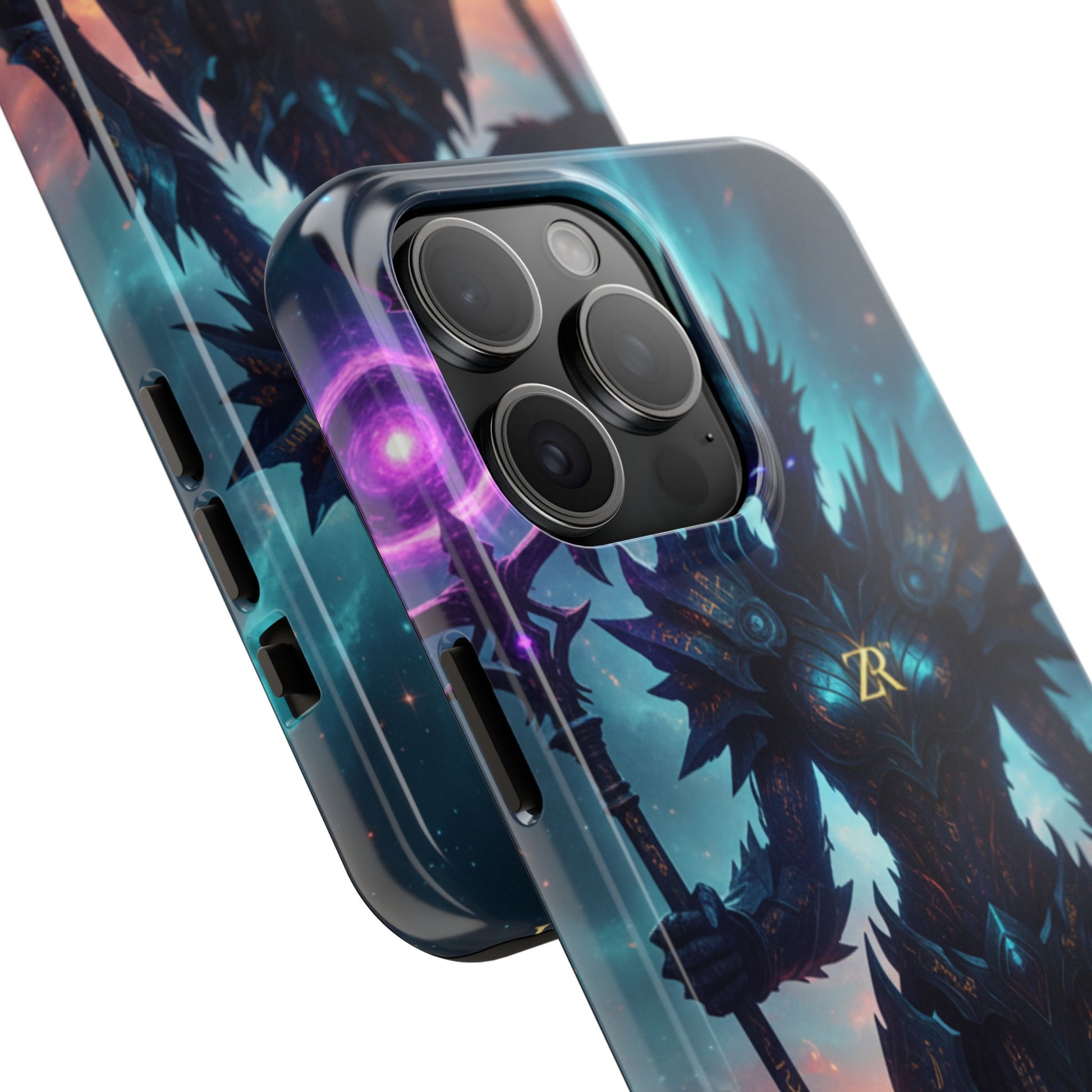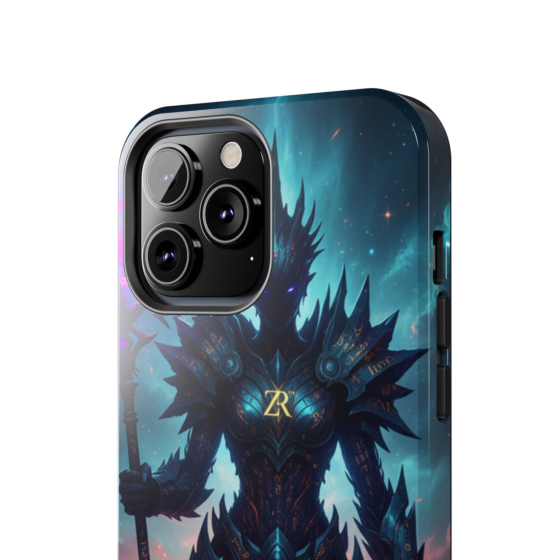 Protect your phone with cosmic power. The COSMIC SENTINEL Phone Case from BLOODLINE™ GUARDIANS Collection features a mysterious dark warrior silhouette with massive spiked armor, glowing teal energy, and ZR™ gold logo. Epic sunset cosmic background with purple and orange skies. Premium dual-layer protection with glossy finish and shock-absorbent design. Available for iPhone and Samsung Galaxy models. Limited edition premium phone protection by Zest Rhythm™. It's Not Just Gear — It's A BLOODLINE™. It's Only The Start 🚀