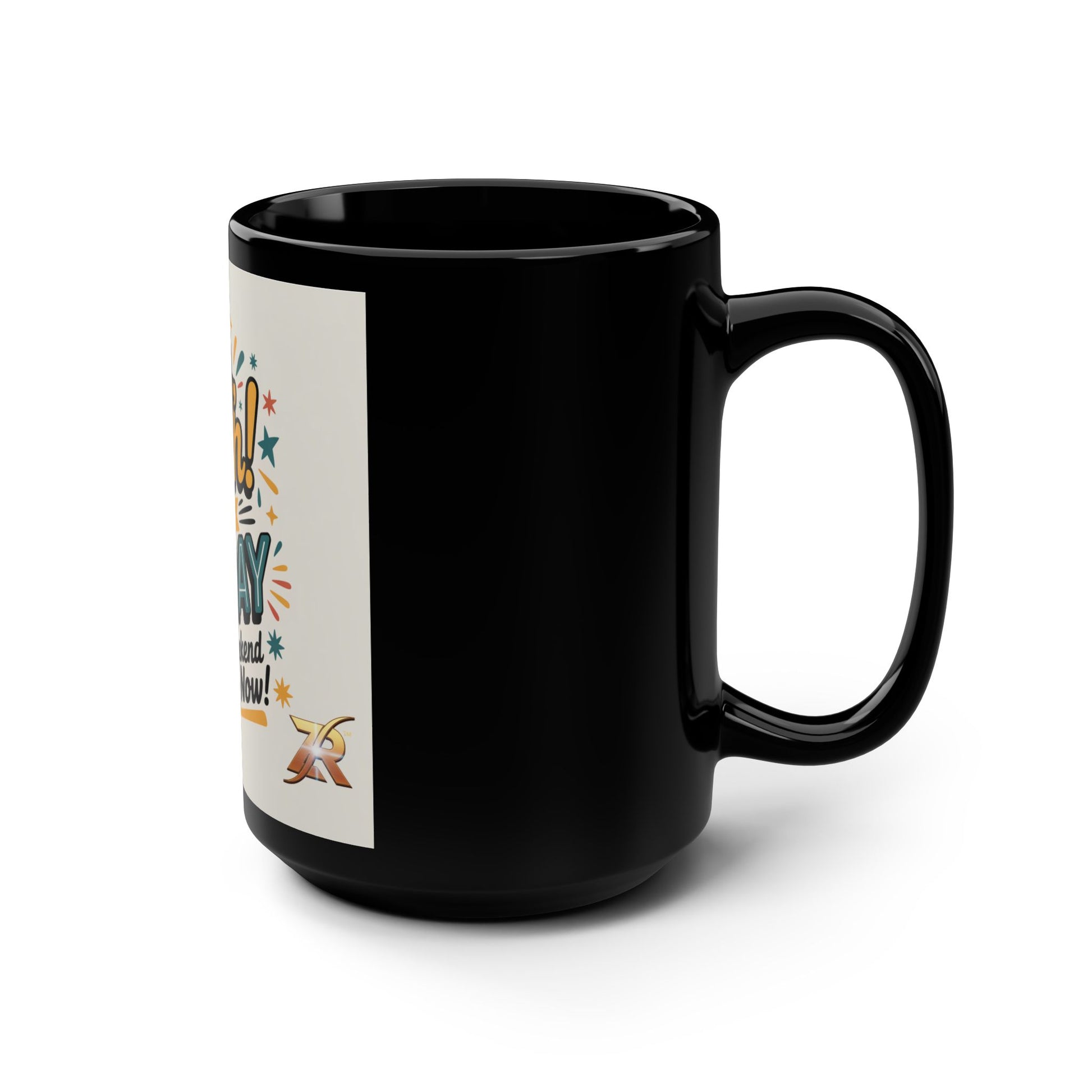 Friday Coffee Mug — “Oh Yeah! It’s Friday The Weekend Starts Now” 15oz Black Ceramic