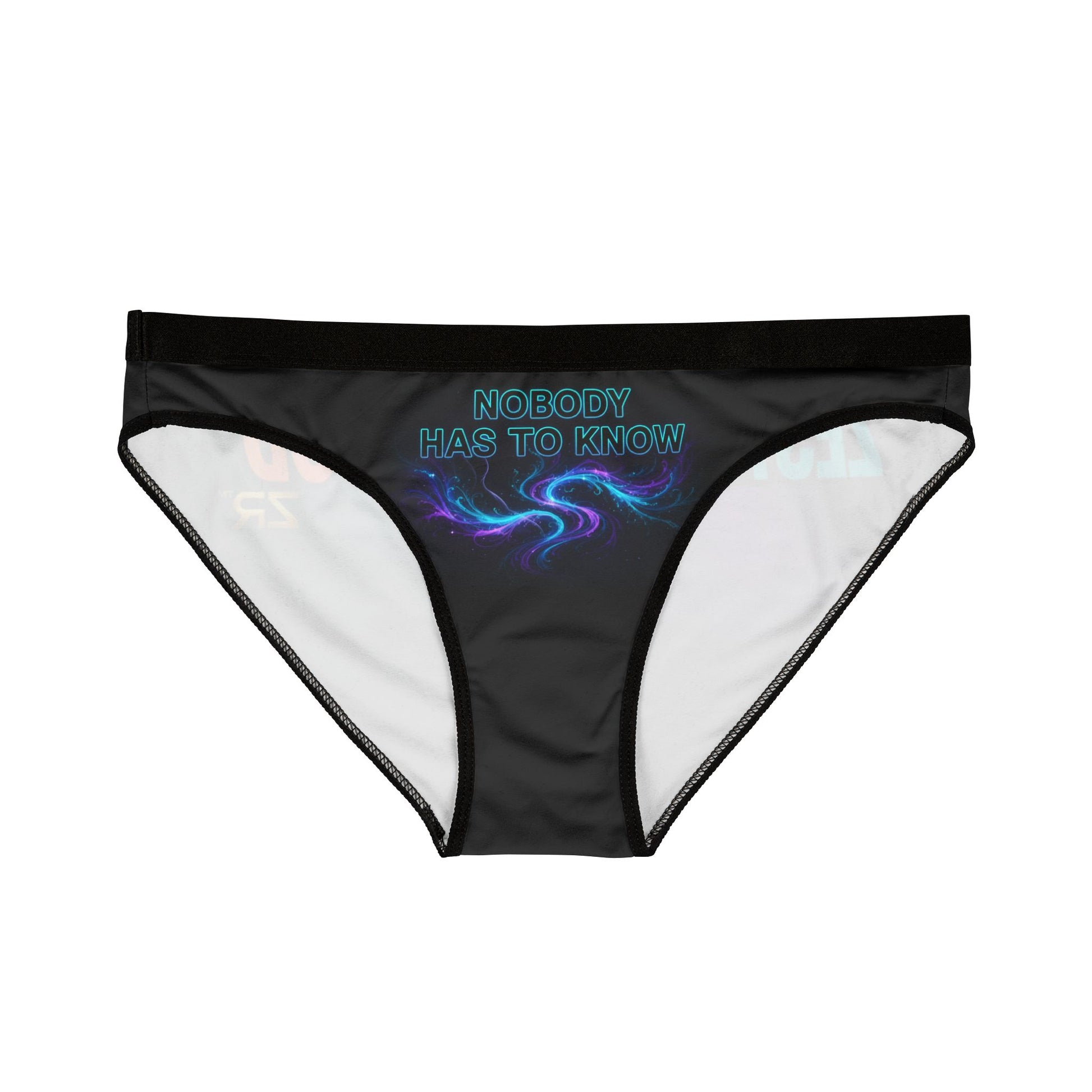 Nobody Has To Know. Premium cosmic Aquarius women's underwear featuring mysterious rebel energy with electric blue, purple, and teal cosmic swirls. Perfect for the independent air sign who plays by her own rules—unpredictable, secretive, and impossible to figure out. What happens with her stays between you two.