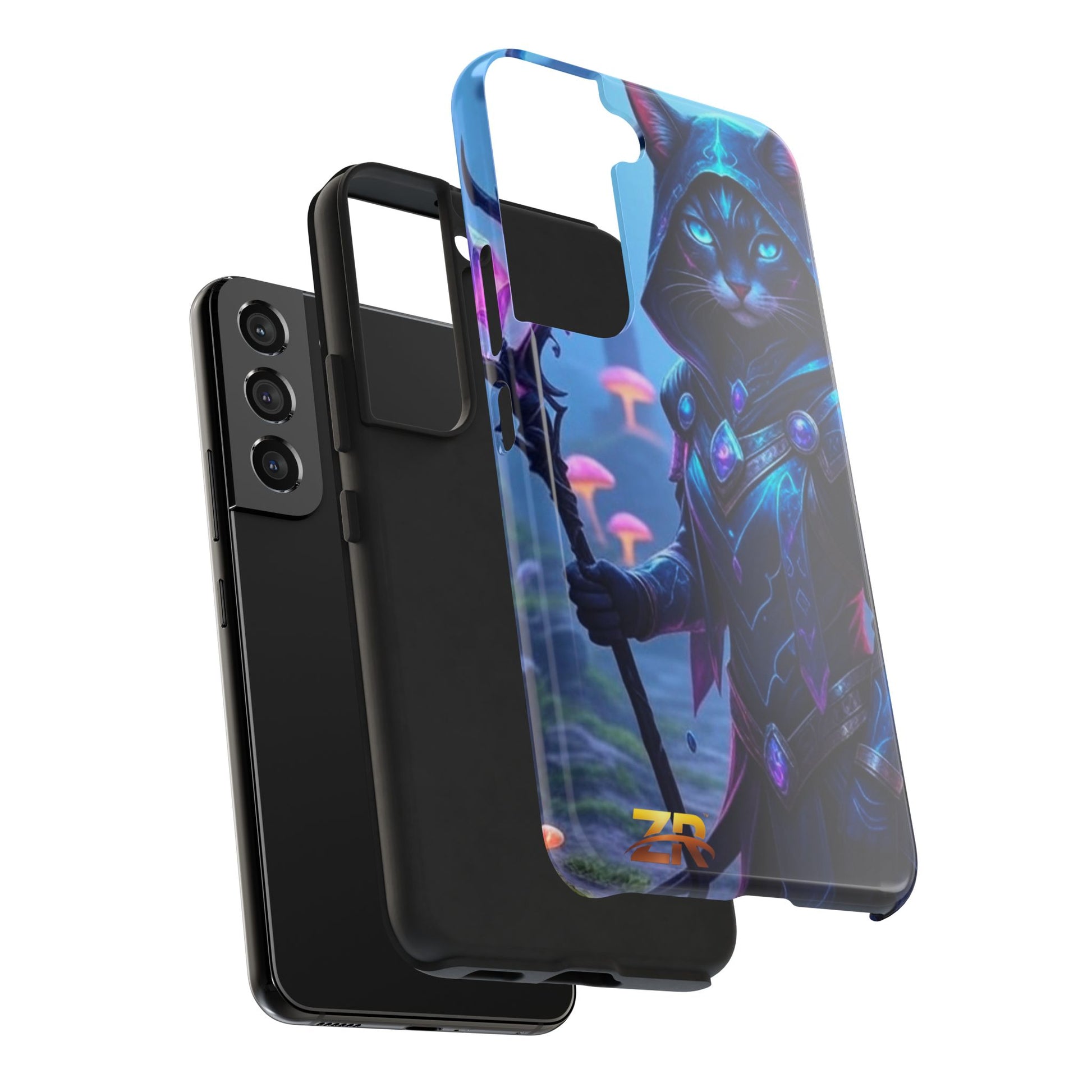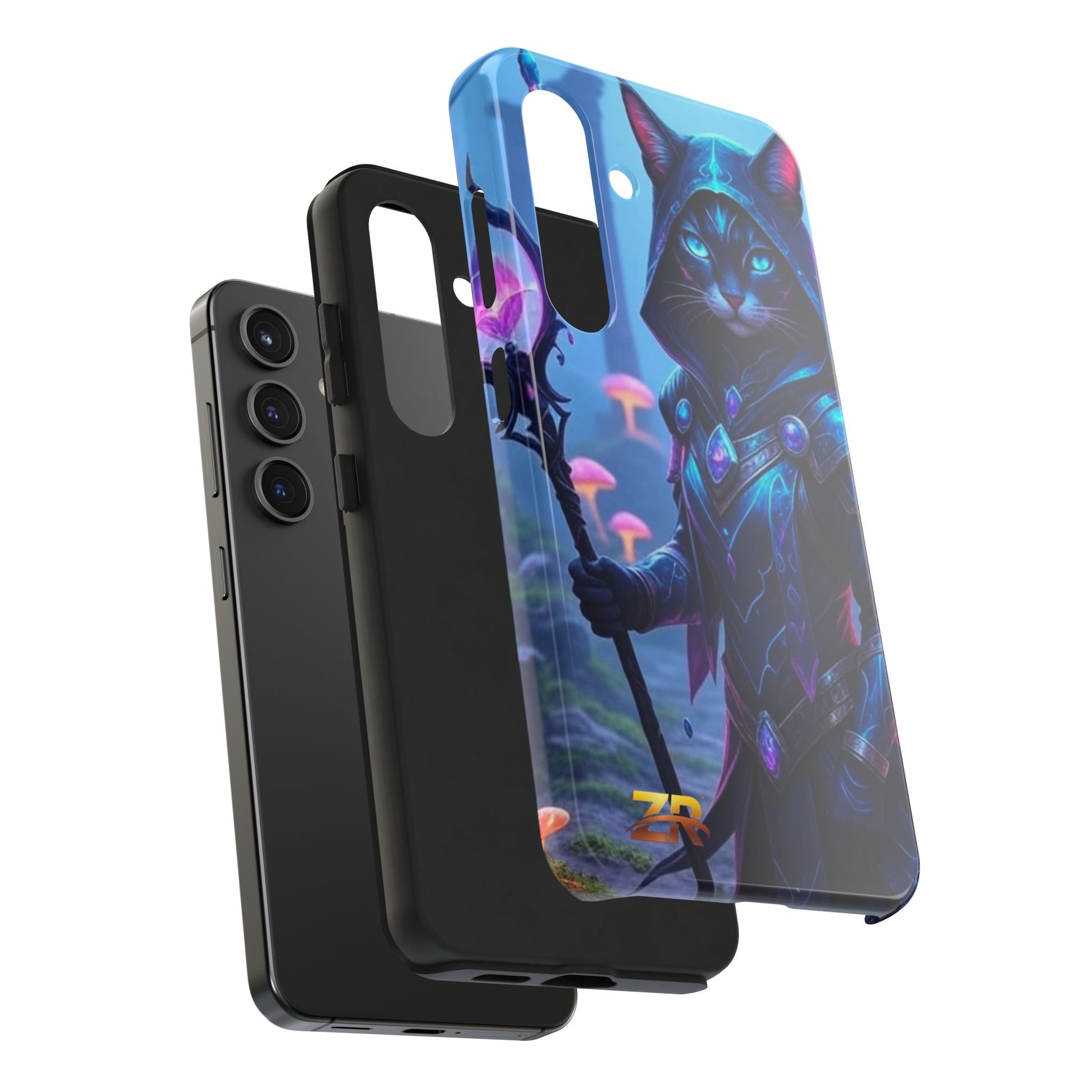 Protect your phone with cosmic royalty. The QUEEN ESTY Cosmic Samurai Phone Case from BLOODLINE™ GUARDIANS Collection features our majestic calico cat warrior with luminous green eyes, draped in purple and teal cosmic armor, wielding her mystical staff. Surrounded by ethereal jellyfish and cosmic energy. Premium dual-layer protection with glossy finish and shock-absorbent design. Available for iPhone and Samsung Galaxy models. Limited edition premium phone protection by Zest Rhythm™. It's Not Just Gear — It's A BLOODLINE™. It's Only The Start 🚀