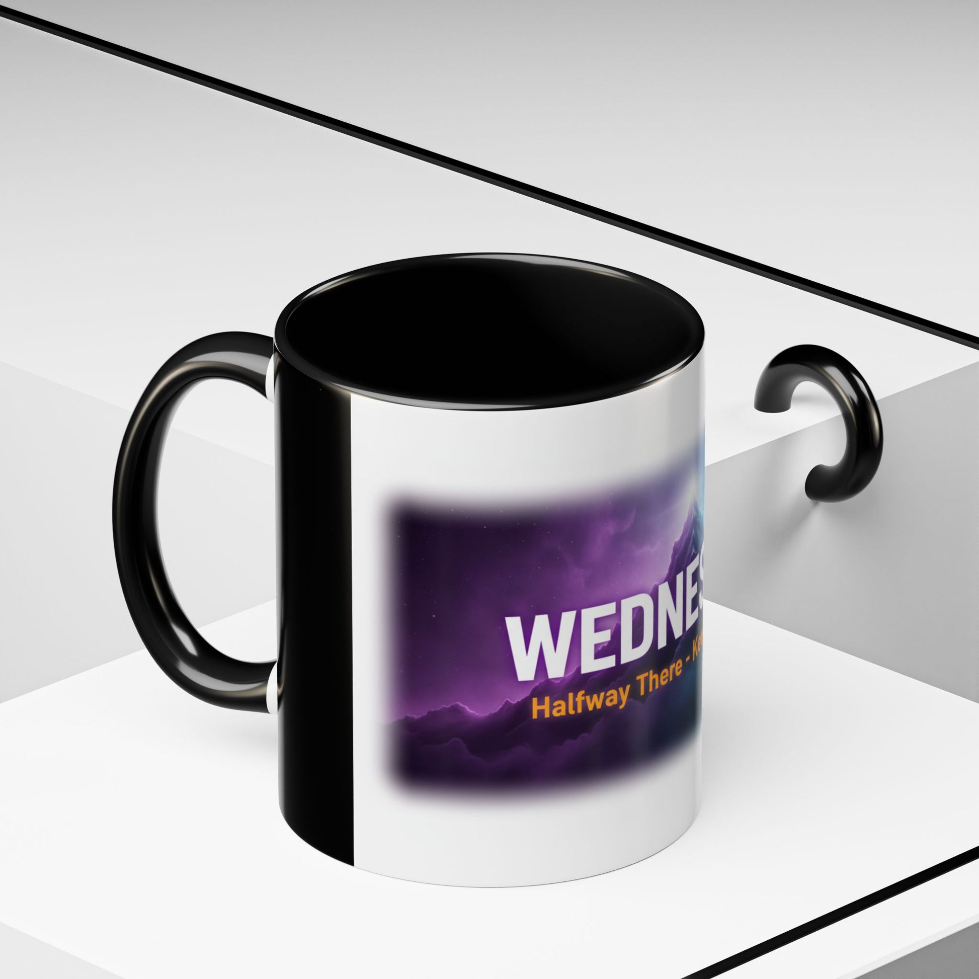 Wednesday means you've made it halfway through the week. This premium ceramic mug captures that triumphant hump day energy with vibrant purple and teal cosmic vibes. You're climbing, you're pushing, and the weekend is in sight. Perfect for your Wednesday morning coffee when you need that motivation boost.